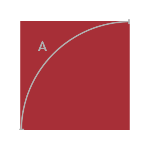 Complete the function that calculates the area of the red square, when the length of the circular arc A is given as the input. Return the result rounded to two decimals.